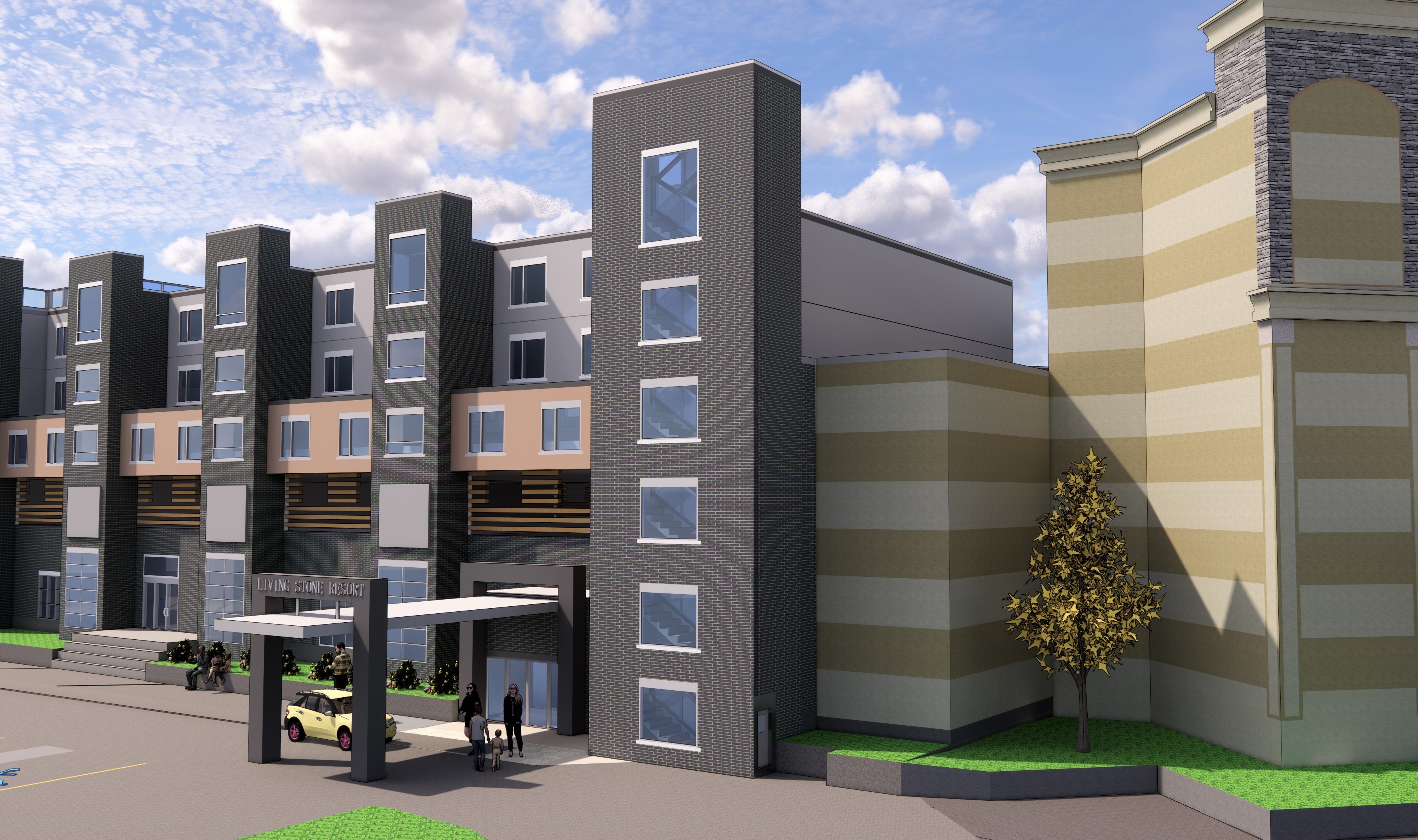 Project Description: The proposed development is comprised of a renovation and addition to both the existing Club Cranberry building and a portion of the Living Stone (formerly Cranberry) Resort hotel building to develop a retirement home. The proposal involves the conversion of the existing 3-storey (plus basement) Club Cranberry building plus a 2-story addition above to create 69 retirement home units. The proposal also involves a 3-storey addition above the existing Living Stone Resort restaurant and swimming pool and a 5-story addition in front of the existing garage and delivery room for an additional 57 retirement home units. A total of 126 retirement home units are proposed along with a total of 13,000 sq. ft. of amenity space, including dining, lounges, fitness facilities, etc. to be used exclusively by the senior residents.